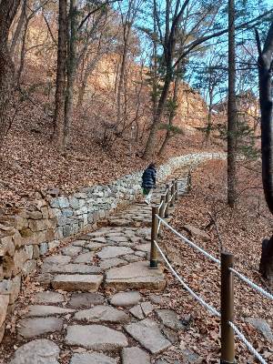 이 석상을 지나 좀더 올라가면 조금 가팔라지면서 계단들이 나오기 시작합니다.